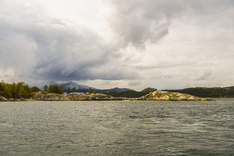Wir befahren jetzt Indresundan und Yttresundan zwischen Straumøya und dem Festland.