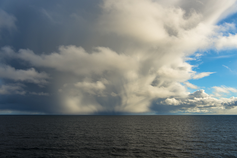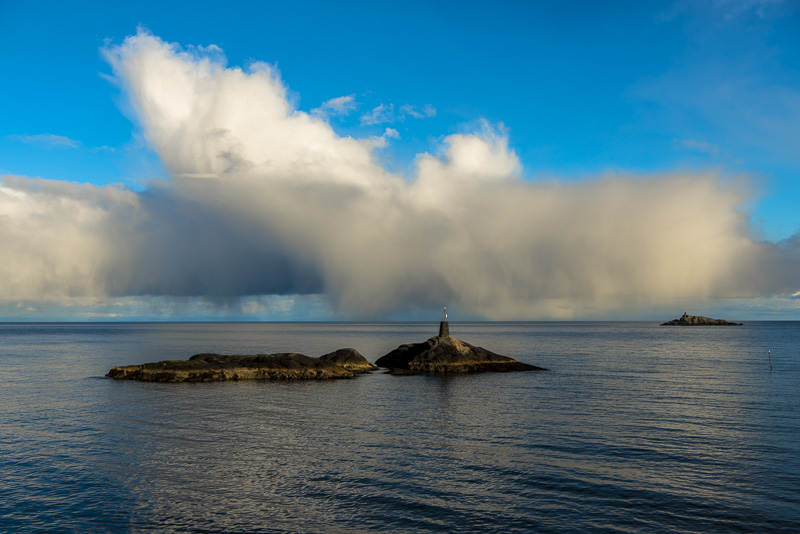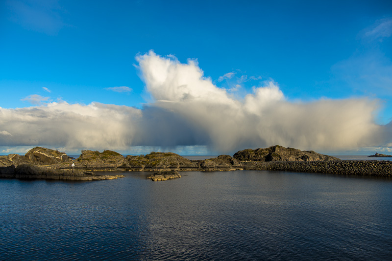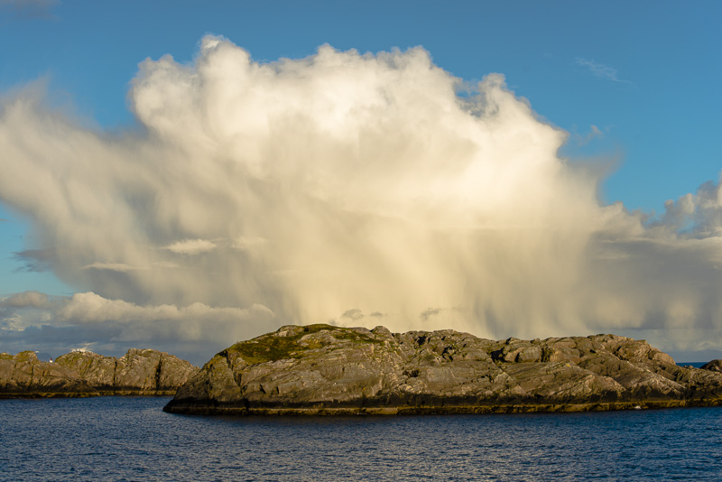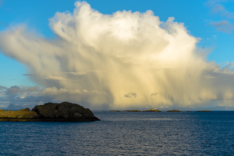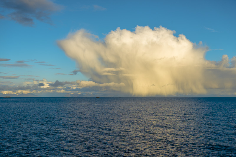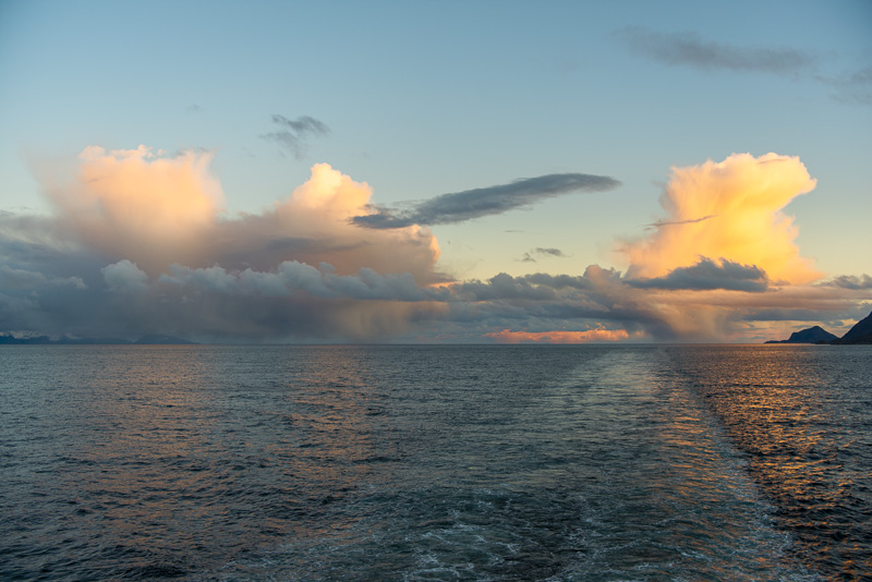 Richtung Festland steht immer noch der gigantische Wolkenturm, jetzt in der Abendsonne wunderschön beleuchtet.