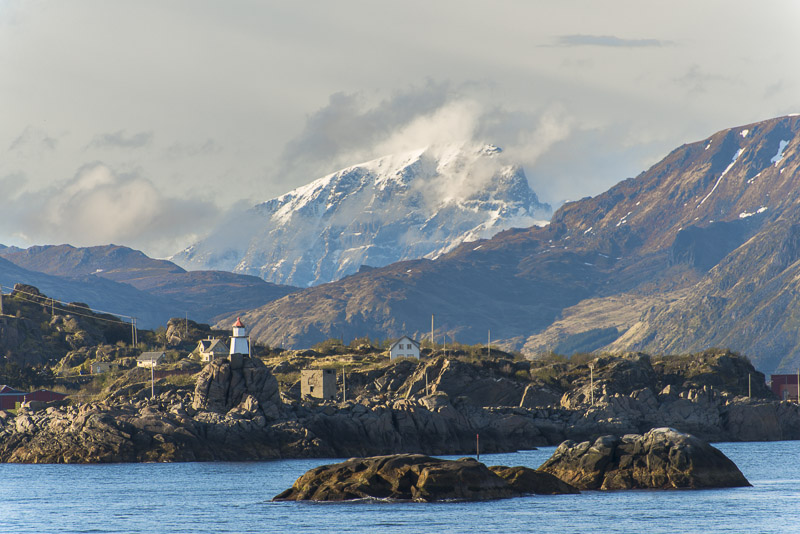 Auf der linken (westlichen) Seite die Insel Selsøya mit der markanten Spitze des Hestmannen (571 m)