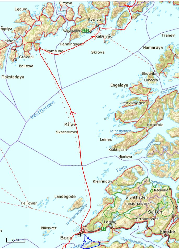 Es geht jetzt durch Meløyfjorden und Eidet ...