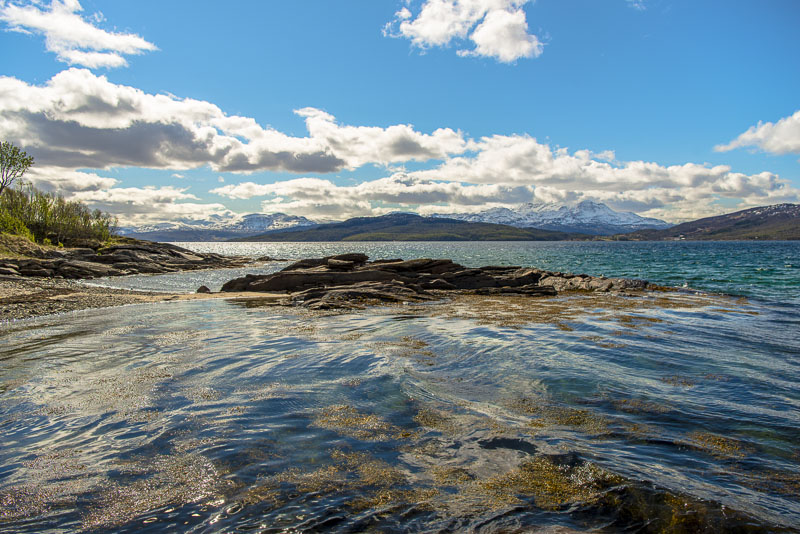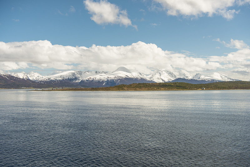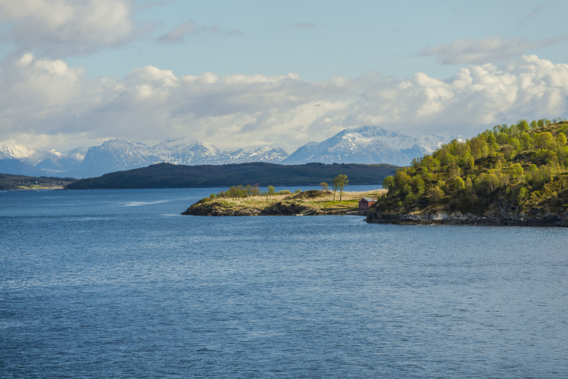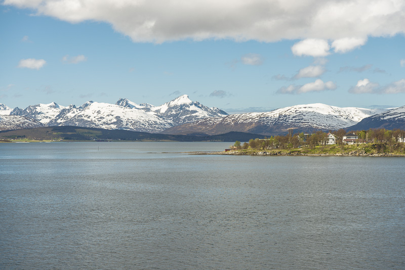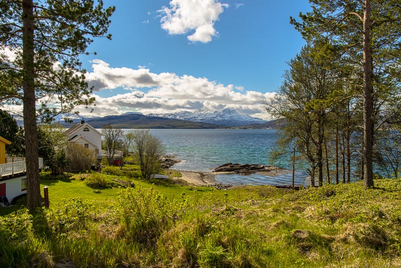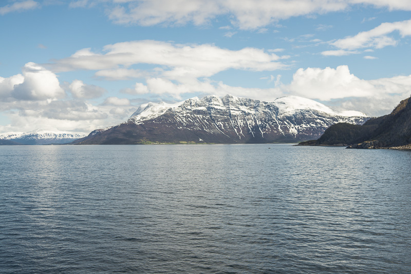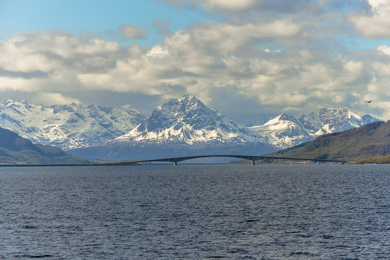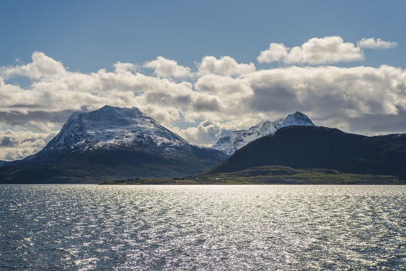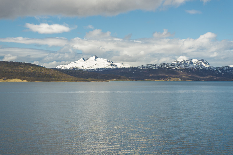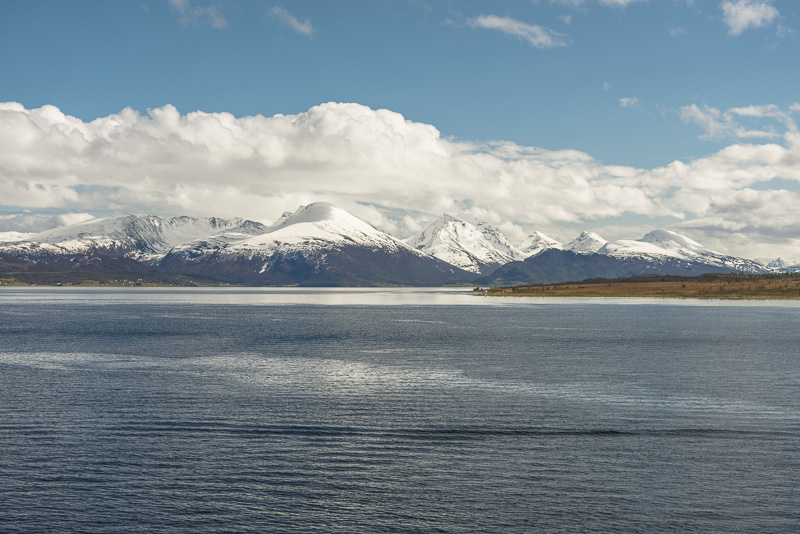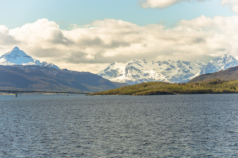 Hinter dem Sund in der Ferne die Berge der Insel Andøya.