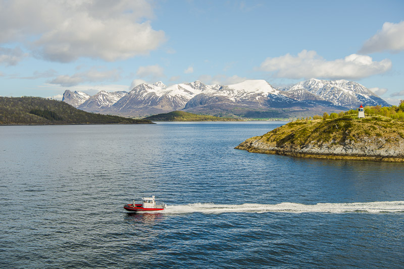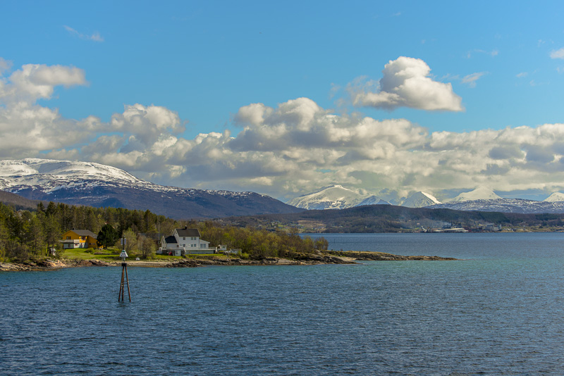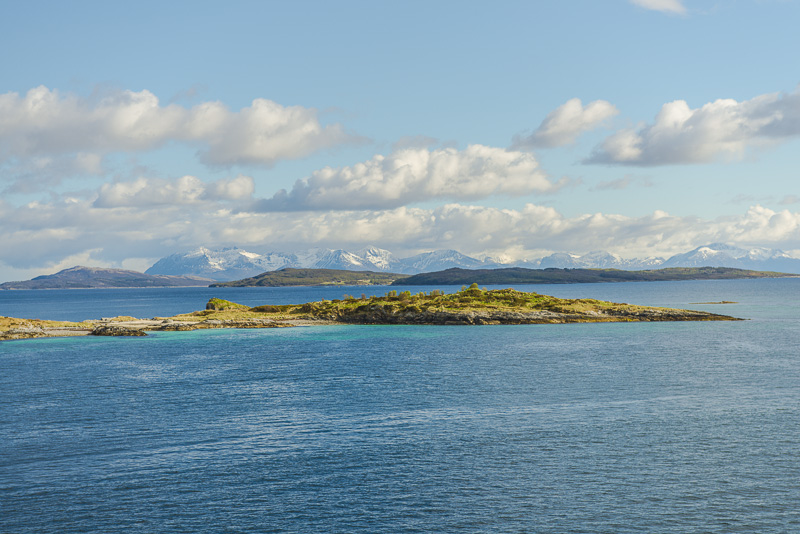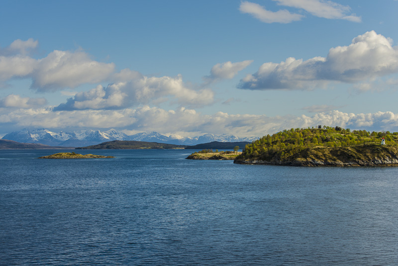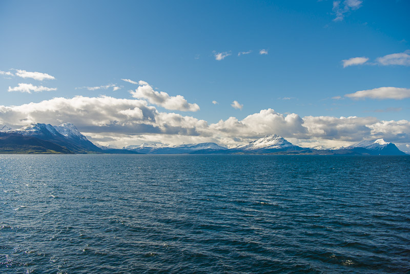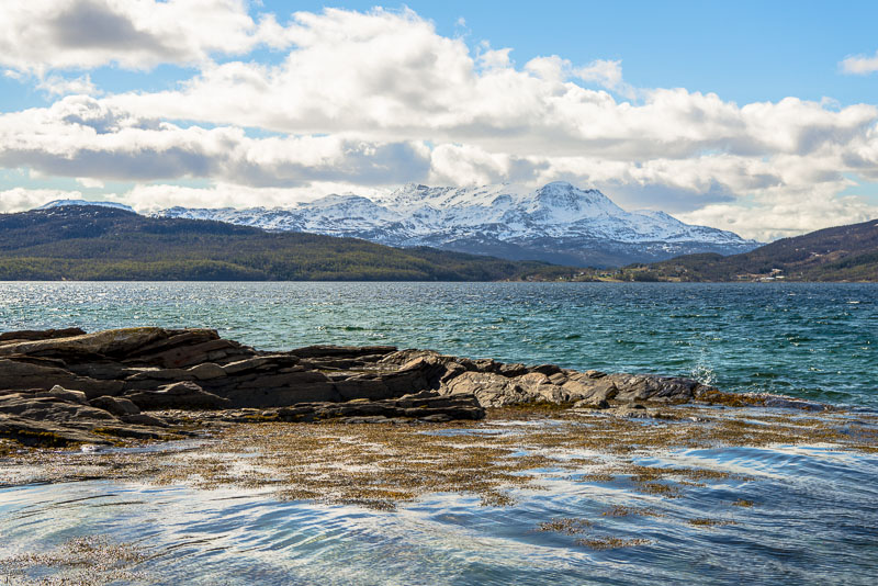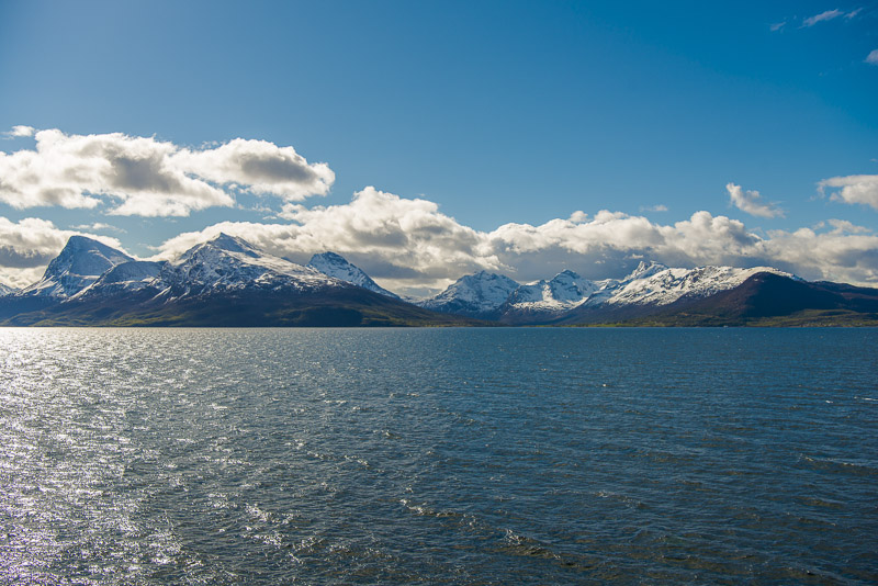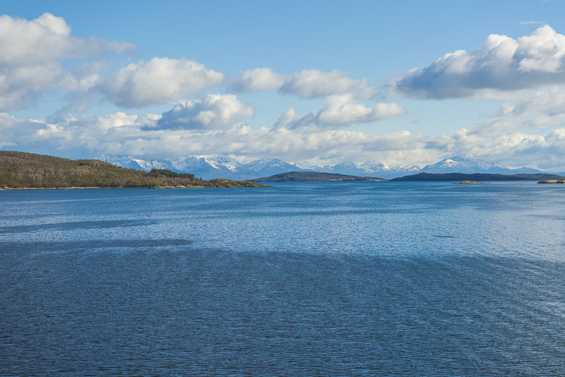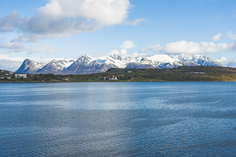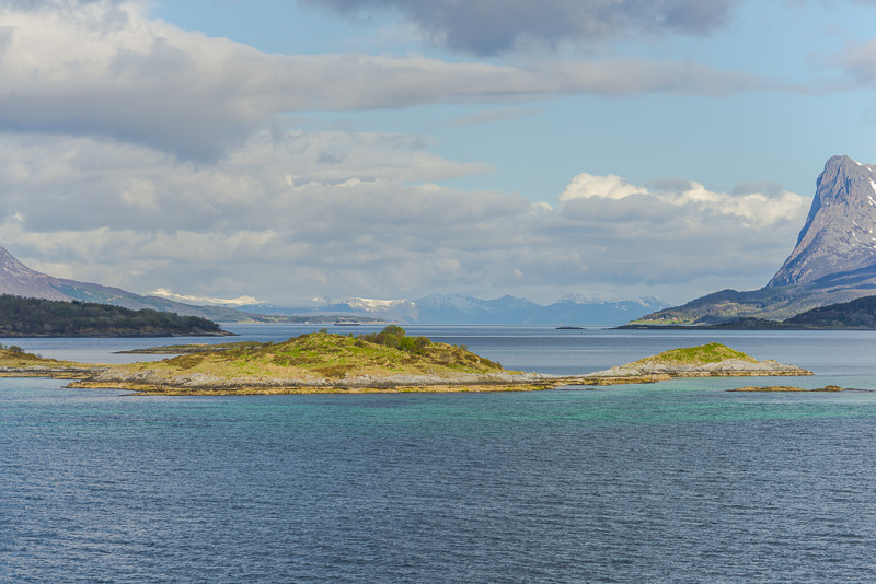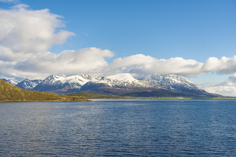 Hinter dem Sund in der Ferne die Berge der Insel Andøya.