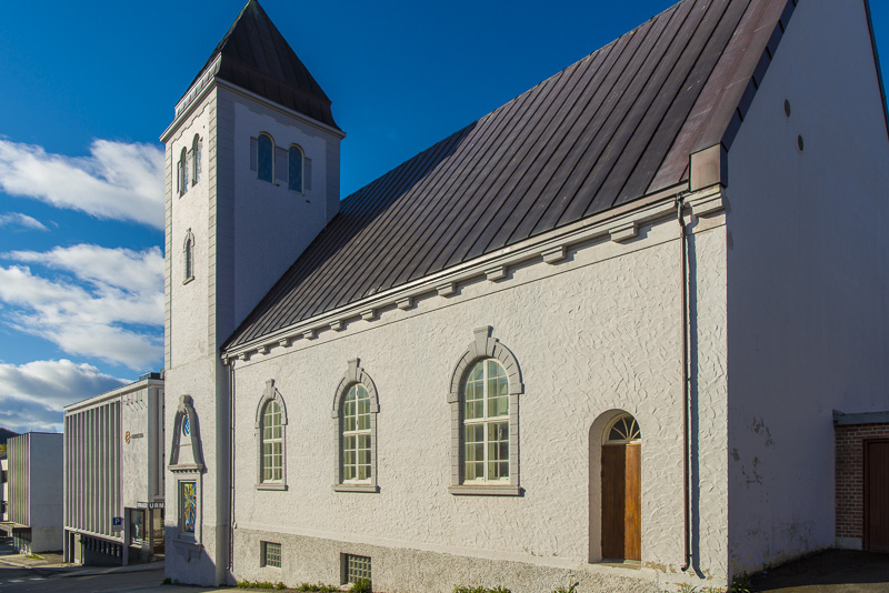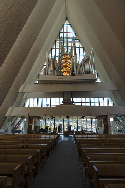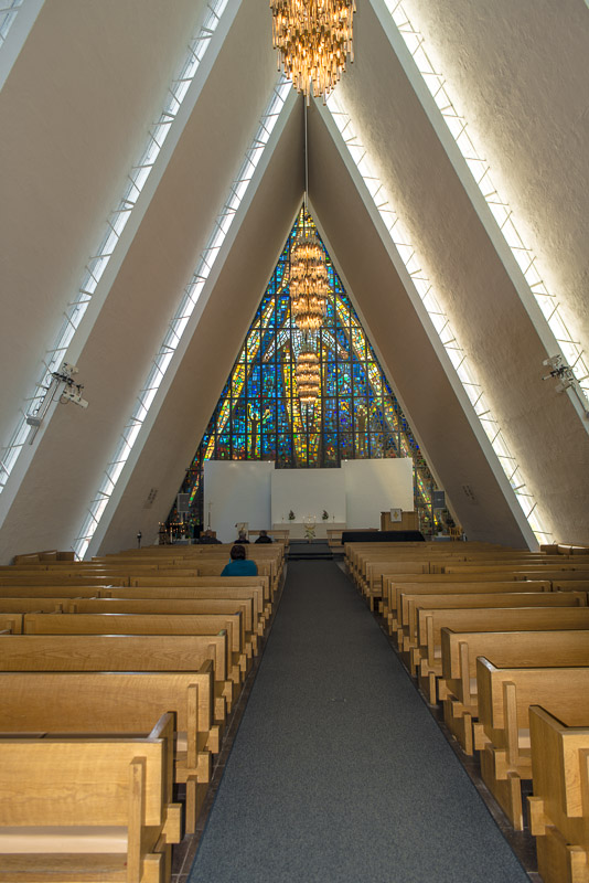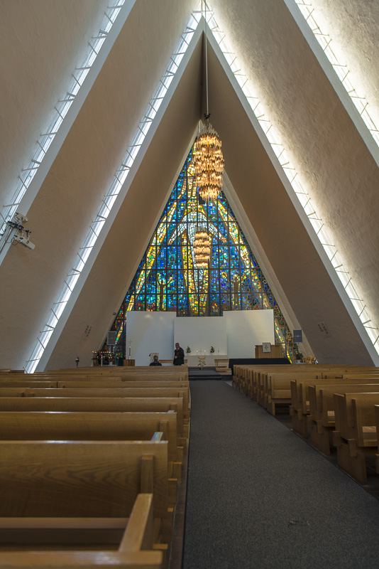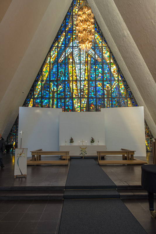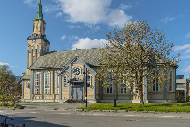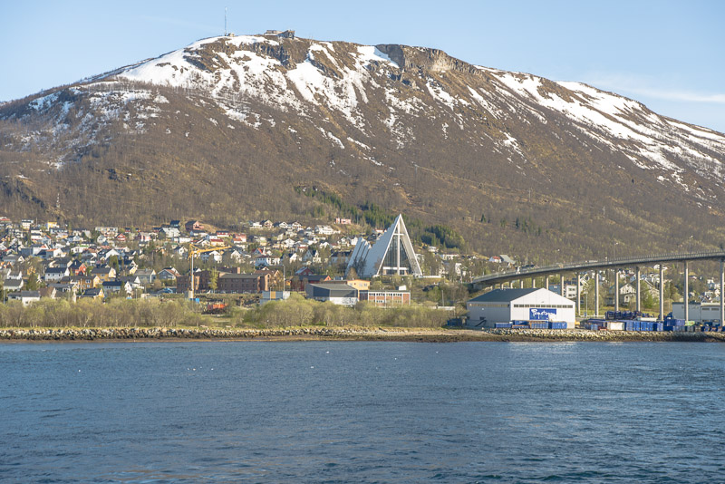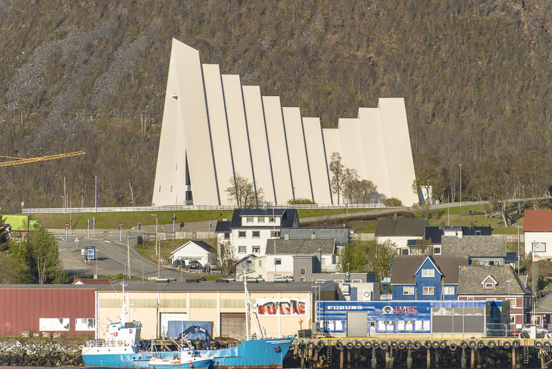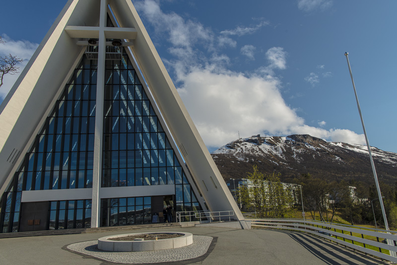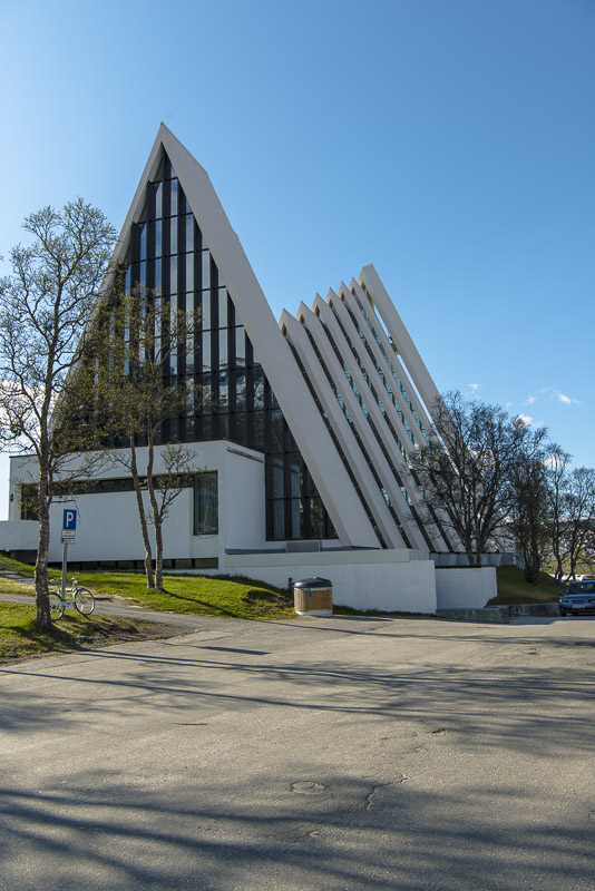 Unser Ziel ist die Eismeerkathedrale, eine elegante, moderne Kirche am Ostufer des Sunds, direkt neben der Brücke.