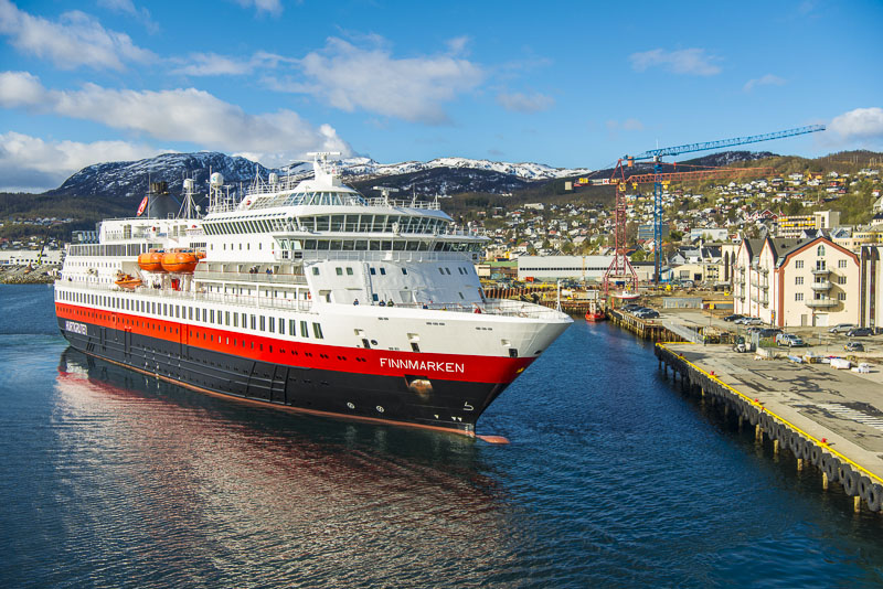 Es legt jetzt ein zweites Hurtigruten - Schiff an - die Finnmarken.