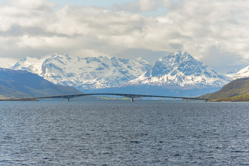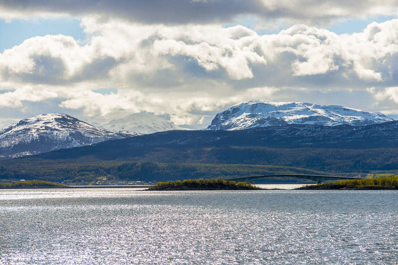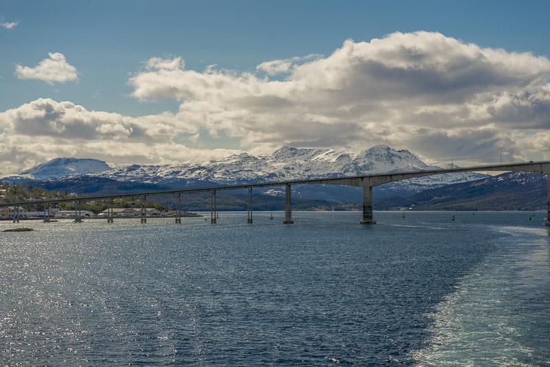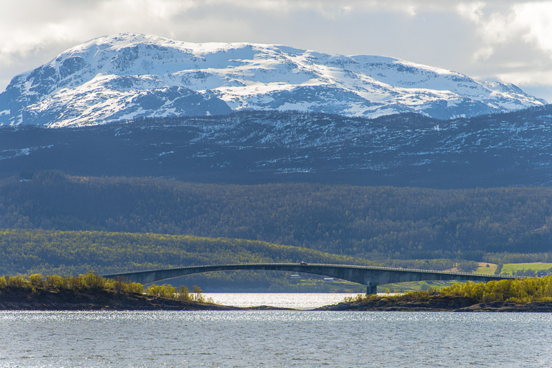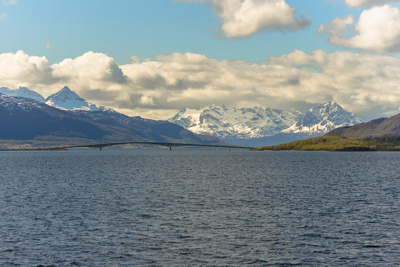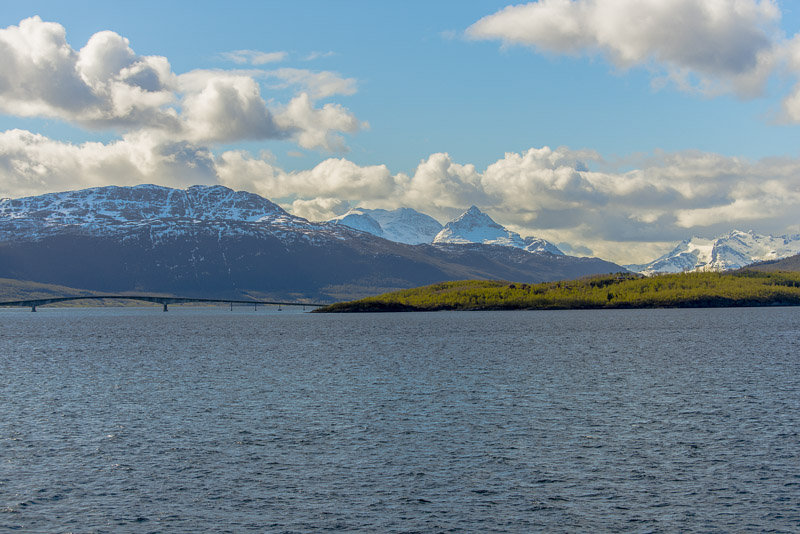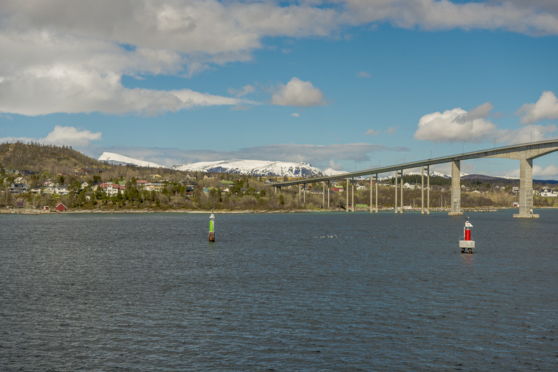 Das muss wohl die Brücke über den Dyrøysund sein, rechts davon die Insel Dyrøya.