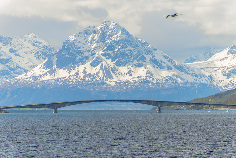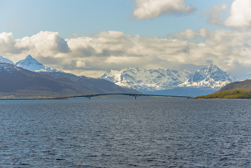 Gisundbrücke, die die Insel Senja mit dem Festland verbindet.