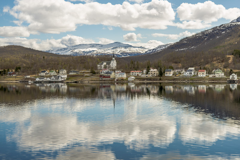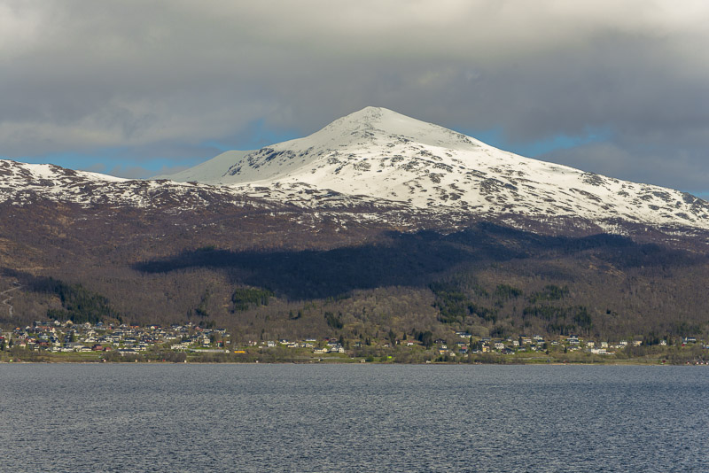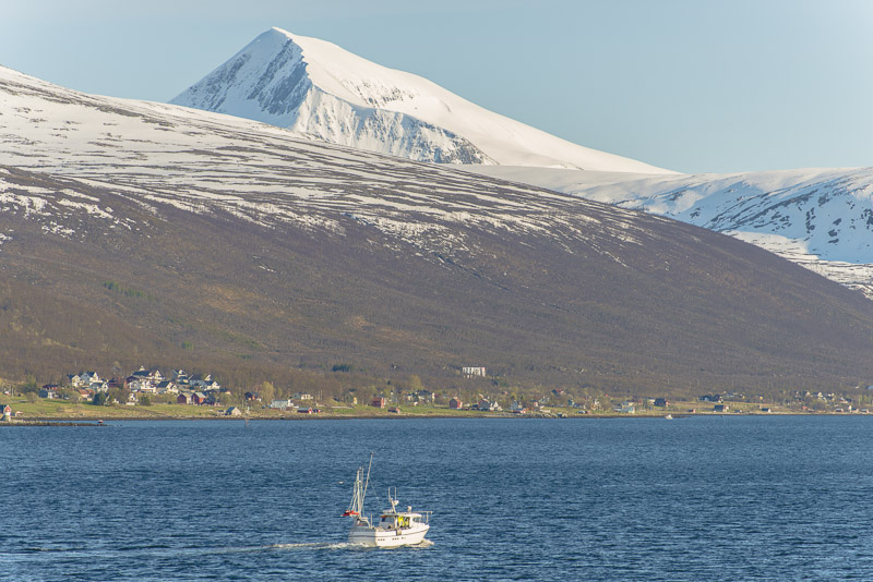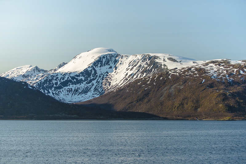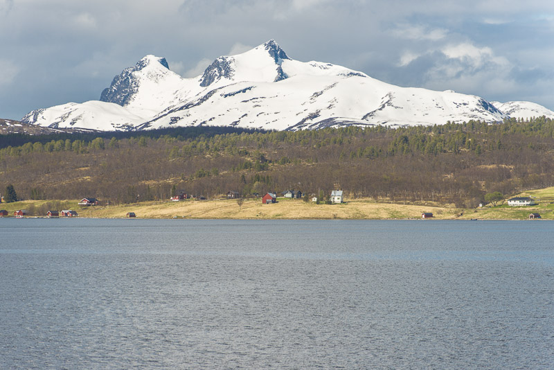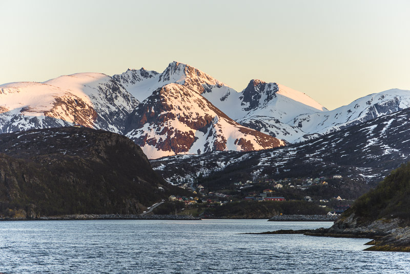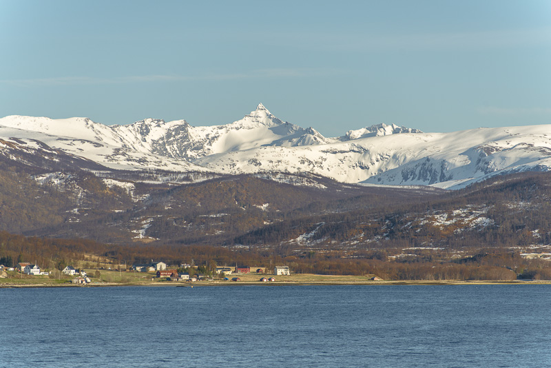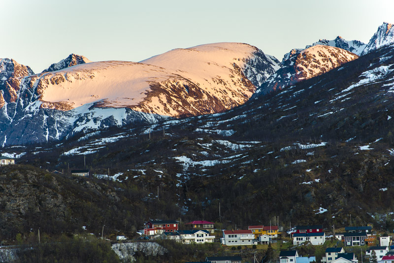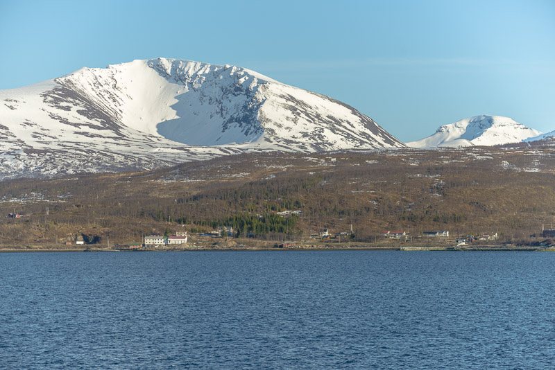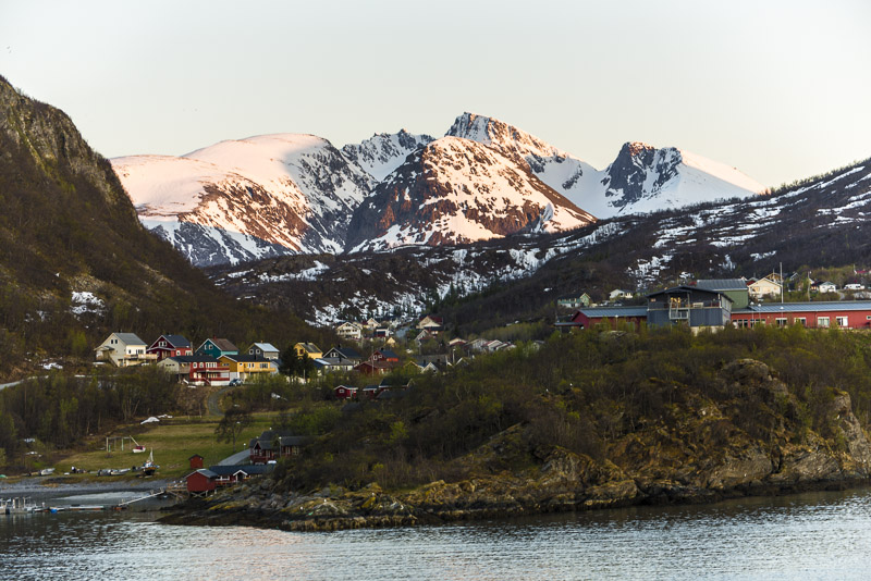 Das muss wohl die kleine Ortschaft Bjorelvnes sein, mit dem Fagerfjellet (894 m) dahinter.