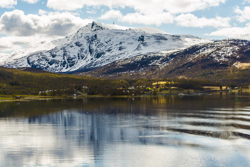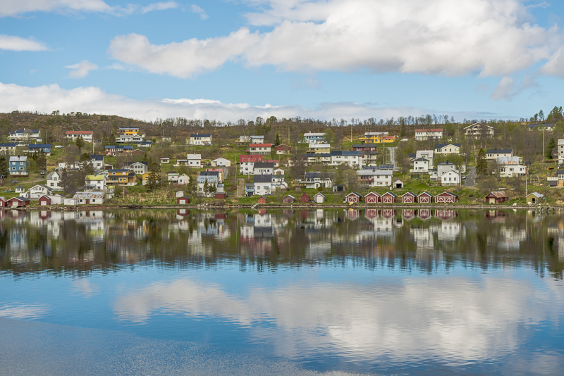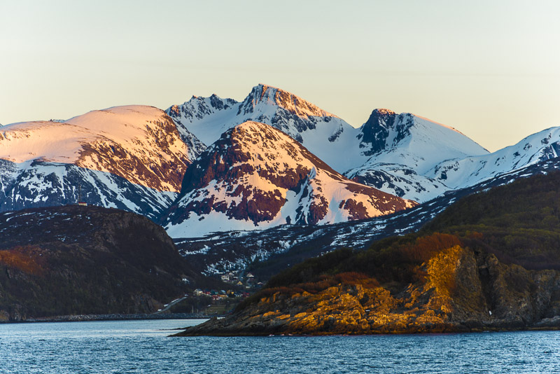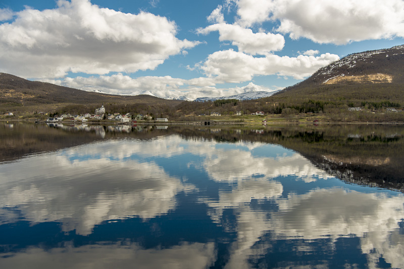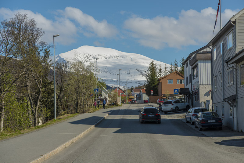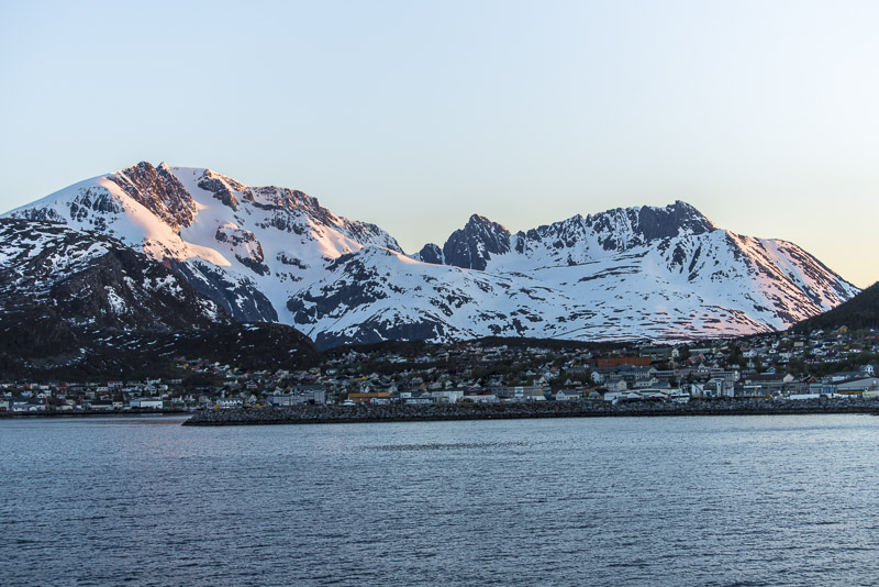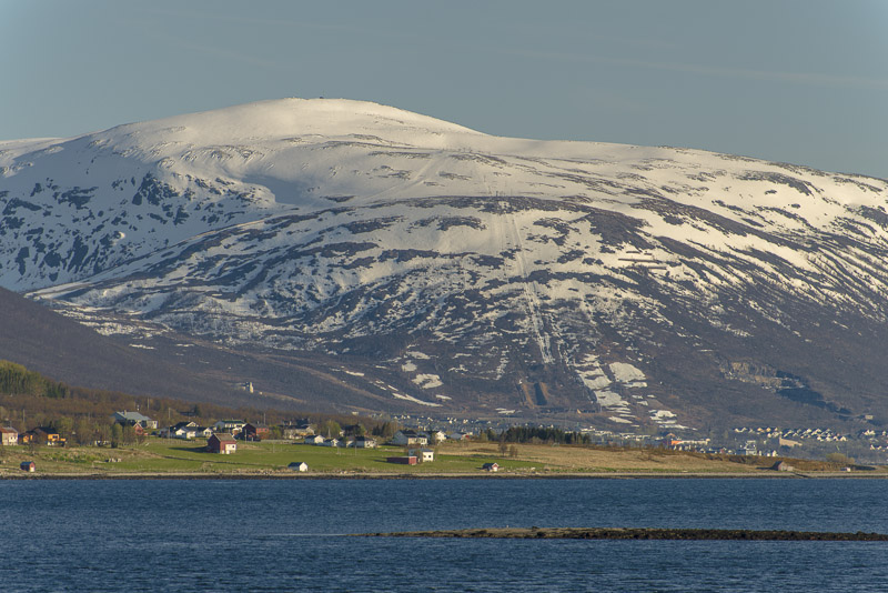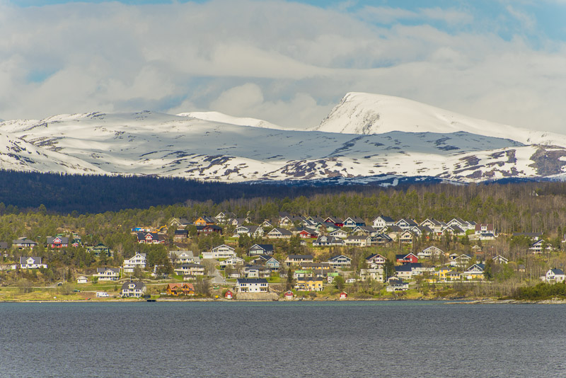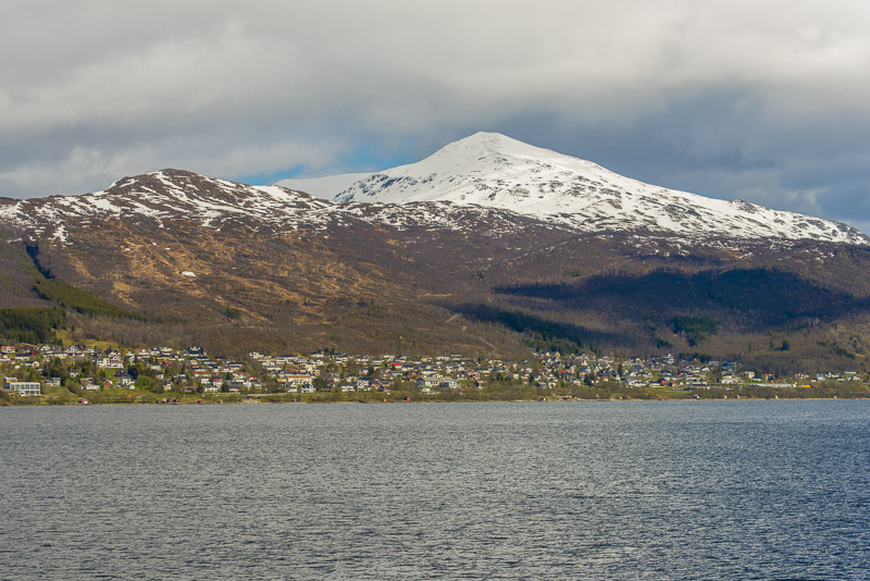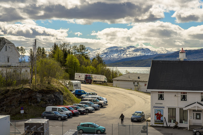 Das muss wohl die kleine Ortschaft Bjorelvnes sein, mit dem Fagerfjellet (894 m) dahinter.