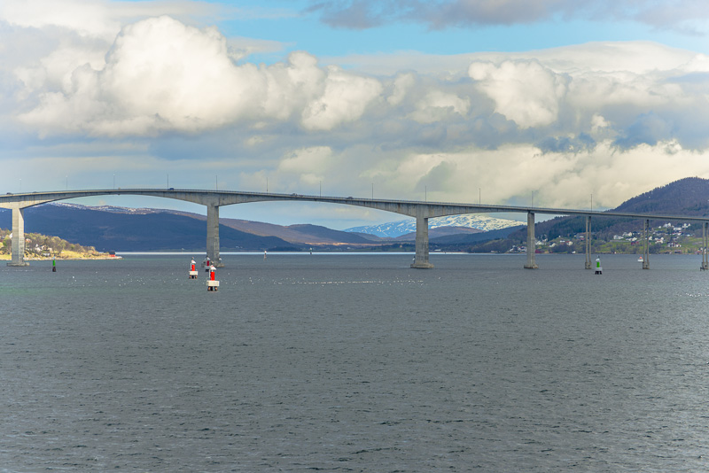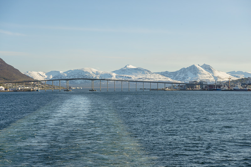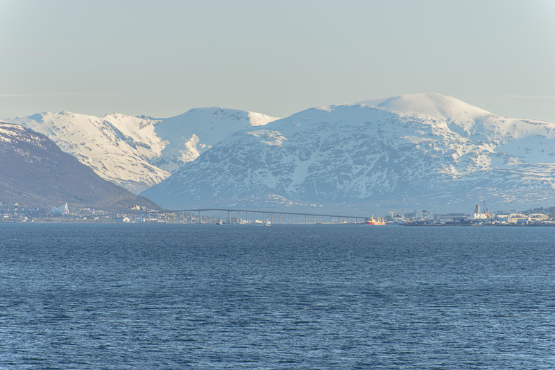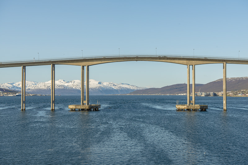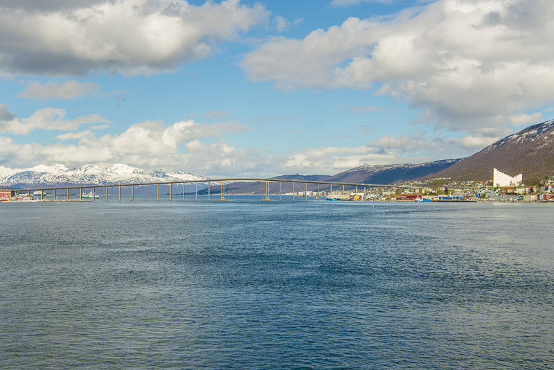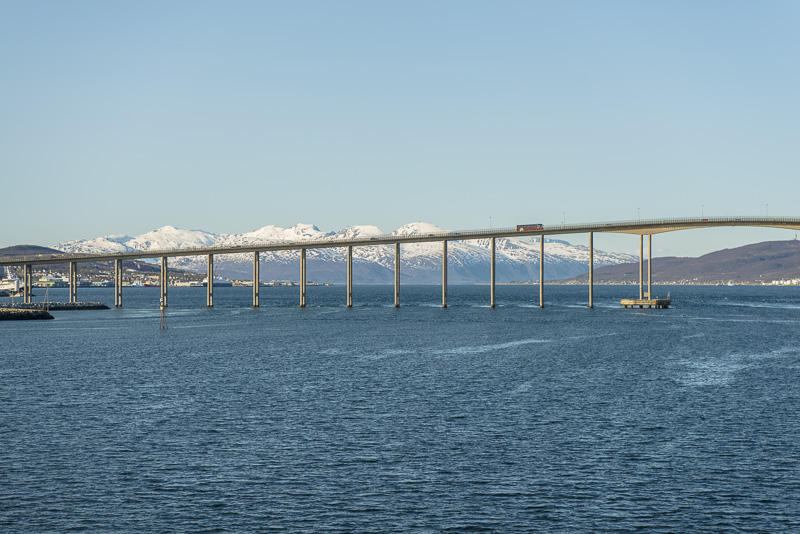 Die Brücke über den Tromsøsund kommt in Sicht.