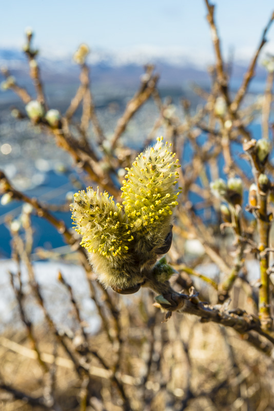 Obwohl noch Schnee liegt, gibt es die ersten Blüten - hier eine ganz niedrige, arktische Form der Palmweide