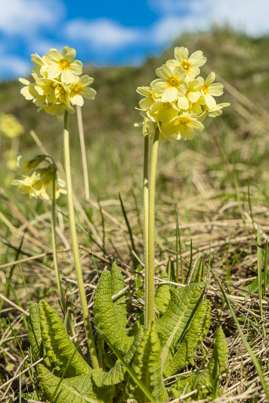 Wir gehen ein Stück zu Fuß, bis zur großen Brücke. Unterwegs sind die Gärten voll mit Wald - Schlüsselblumen (Primula eliator)