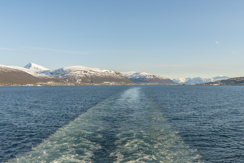 Der Tromsdalstinden verschwindet langsam aus unserem Blickfeld.
