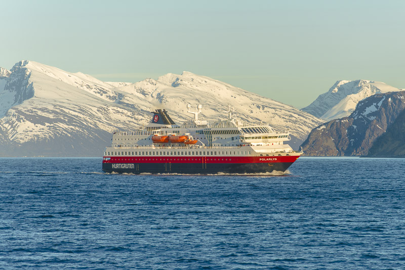 Nach dem Essen wieder eine Schiffbegegnung: das Hurtigruten - Schiff Polarlys.