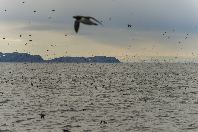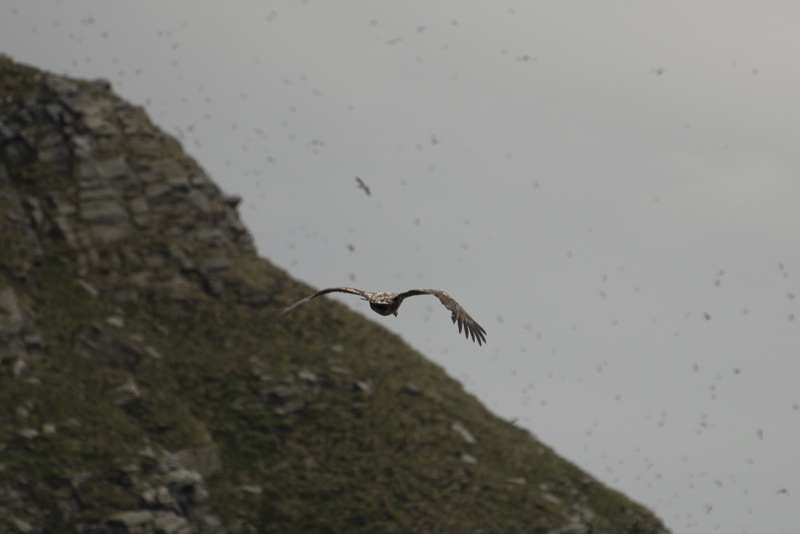 Jetzt kreisen gleich vier Seeadler über dem Hauptteil der Insel Storstappen, die wir gerade umrunden.