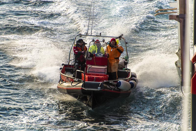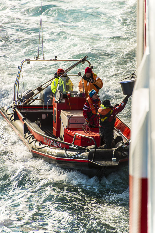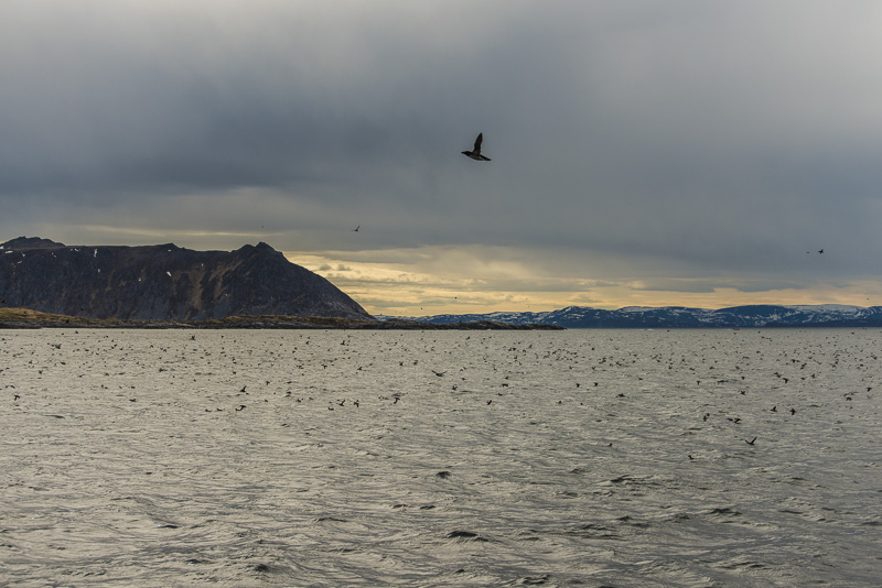 Hier besteigen wir das kleine Ausflugsschiff, das uns zur Vogelbeobachtung ins Gjisværstappan Vogelreservat bringt.