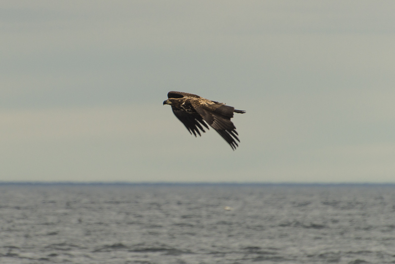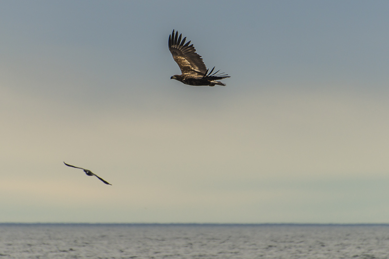 Jetzt erscheint ein ziemlich großer Vogel: ein Weißschwanzseeadler.