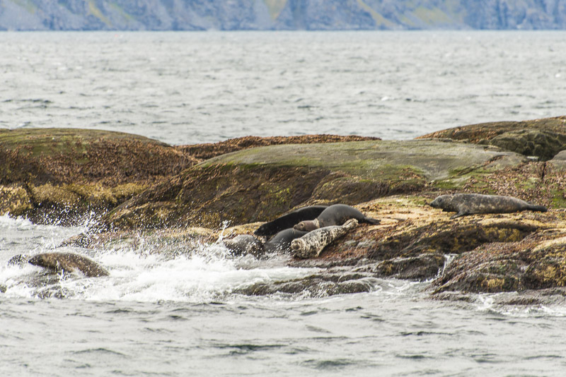 Diese Seehund sind doch nicht ganz angetan von unserer Ankunft und flüchten sich ins Wasser.