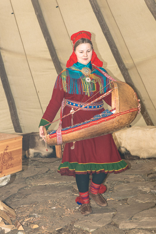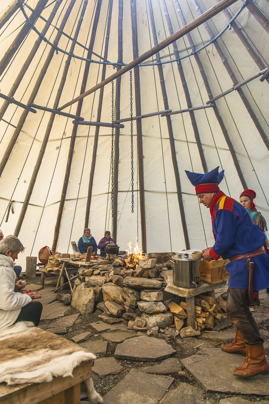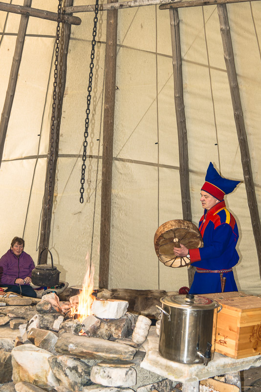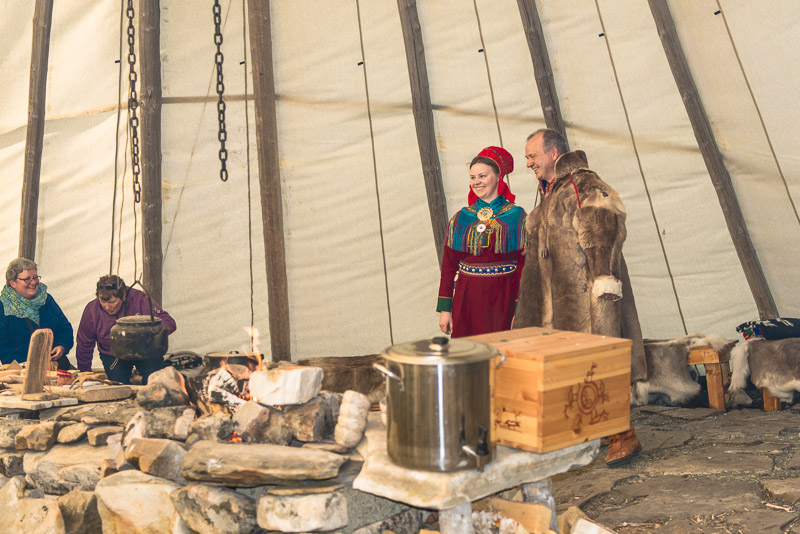 Wir werden, nicht ohne vorher die im Bus rasch eingelernten Begrüßungsworte der Samen aufzusagen, in ein Zelt gebeten, wo uns die Samenkultur nahe gebracht wird.