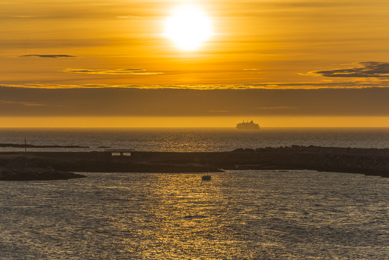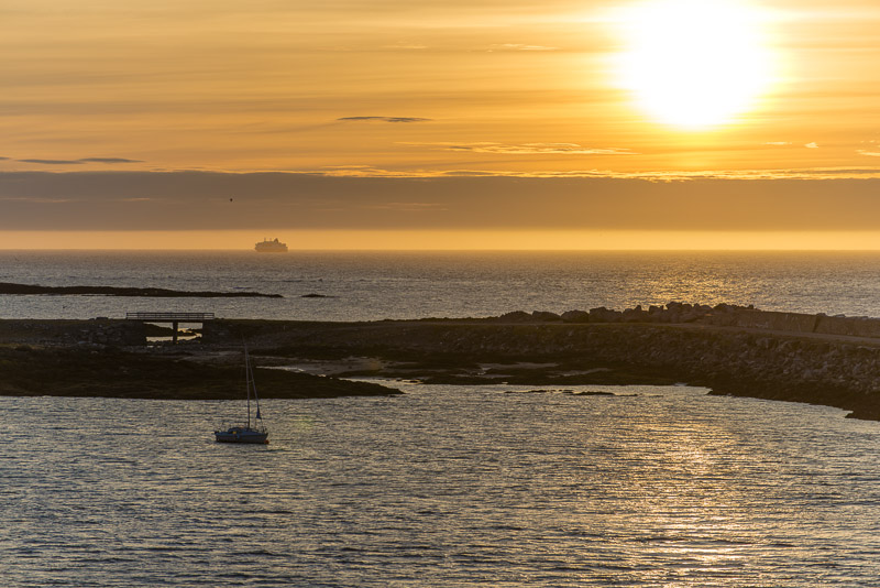 23:30 - Mitternachtssonne und Nebensonne (ganz rechts). Zeit, um schlafen zu gehen.