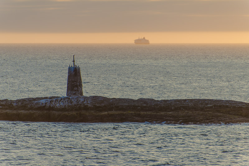 Bismarhallen. Unter diesem Felsen verläuft der fast 7 km lange Tunnel unter dem Mageroysund.
