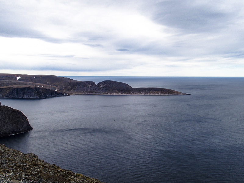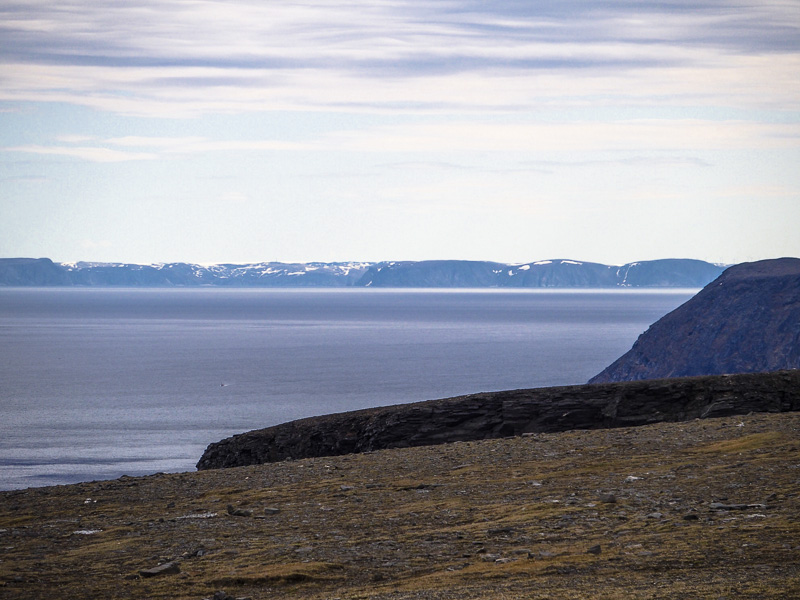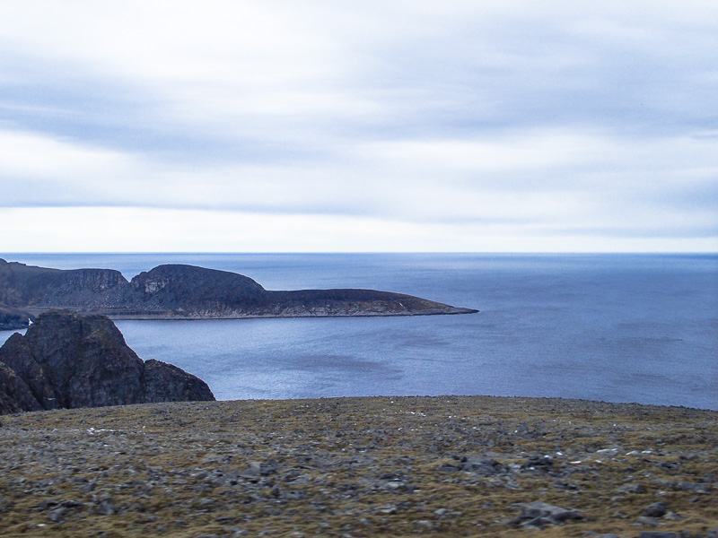 Blick hinüber nach Westen zur Halbinsel Knivskjelodden, dem eigentlichen Nordkap der Insel Magerøy.