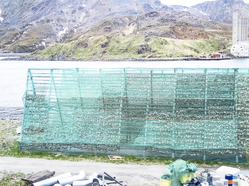 "Steckerlfische" - auf traditionelle Weise luftgetrockneter Fisch, nahe Honningsvåg.