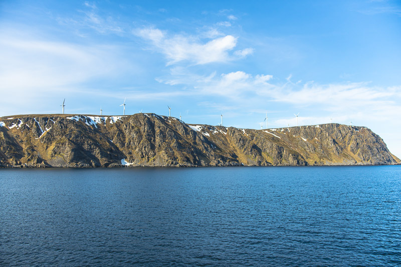 Wir haben Havøysund um 8:00 verlassen und steuern Richtung Hammerfest. Auch hier noch immer eher niedrige Felsen und Windräder. Es wundert einen, dass nicht mehr herumstehen in dieser Ödlandschaft, die für was anderes eh kaum taugt.