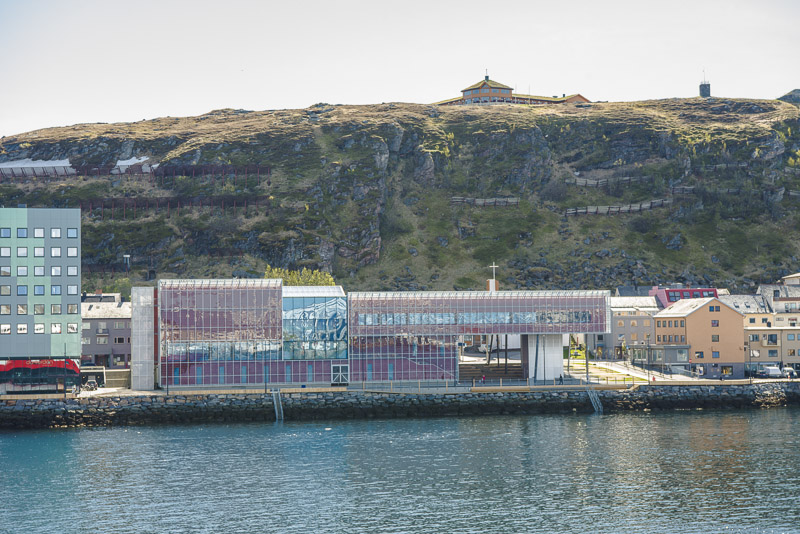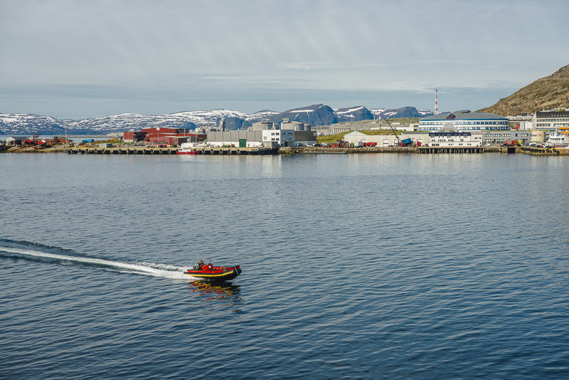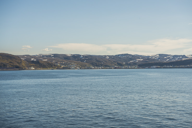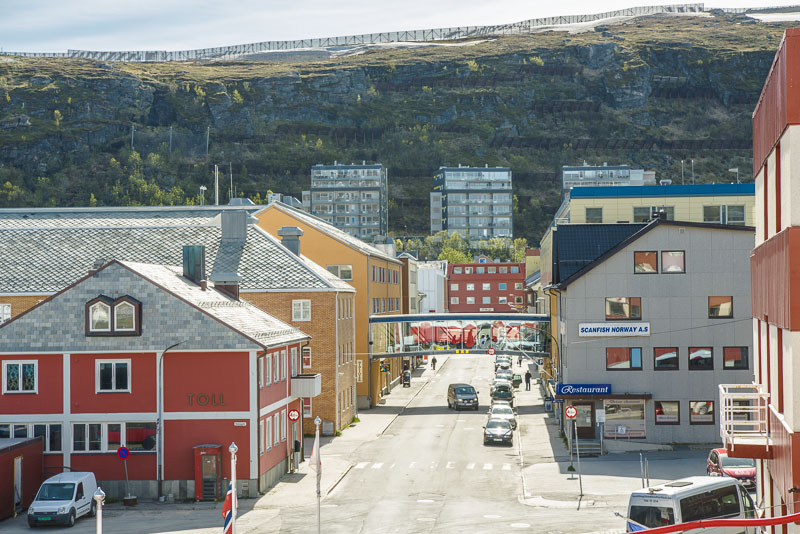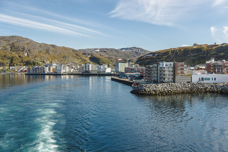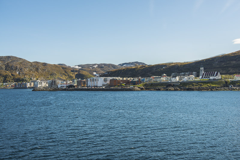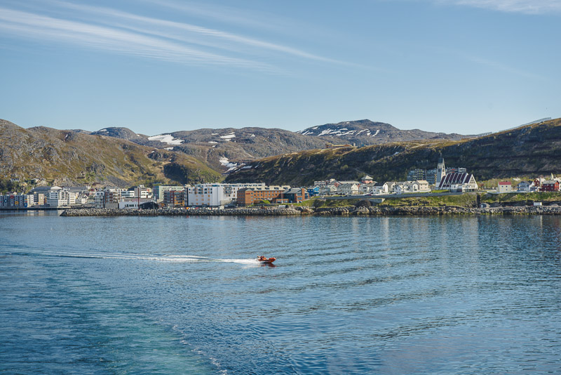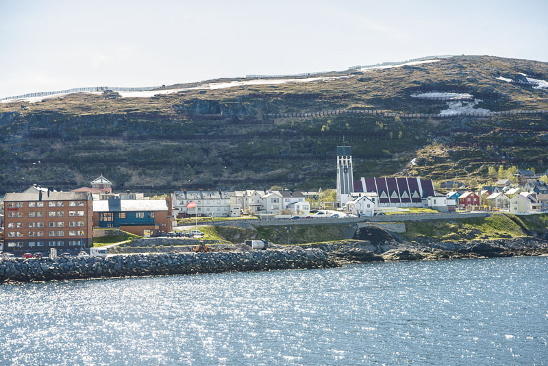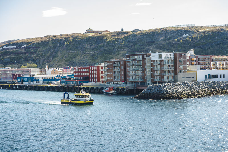 Erster Blick auf Hammerfest, das viele Jahre als nördlichste Stadt der Welt gegolten hat. Mittlerweile hat das wesentlich nördlicher gelegene Honningsvåg auch das Stadtrecht erhalten, und Longyearbyen auf Spitzbergen hat auch schon 2.000 Einwohner.