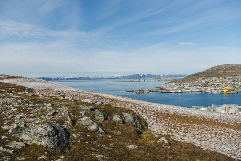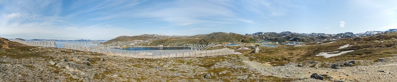Hafenpanorama, beim Abstieg vom Salsvannet zurück nach Hammerfest. Hierher oder ins Bild klicken für eine größere Darstellung.