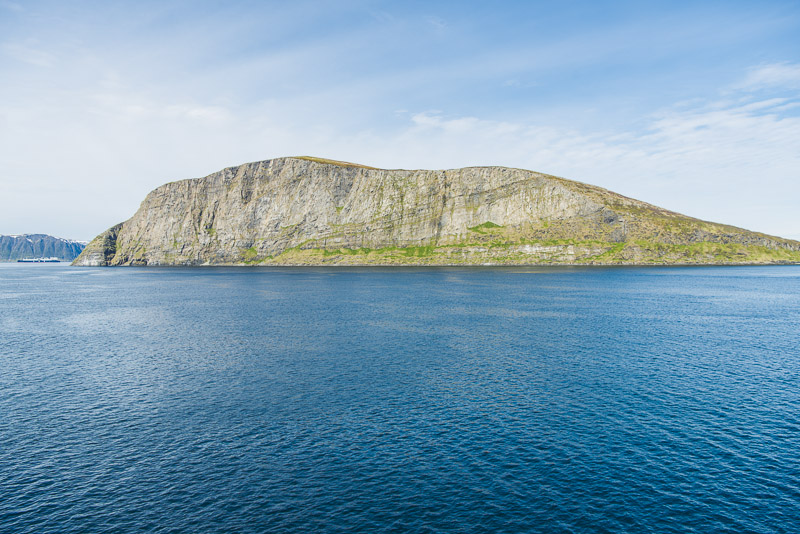 Die 296 m hohe unbewohnte Insel Håja. Unsere Reiseleitung erklärt uns per Lautsprecher, dass das eigentlich keine Insel ist, sondern ein vom Gletscher der Eiszeit verschleppter Felsbrocken - der größte seiner Art auf der Welt.