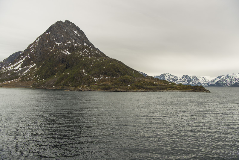 Vorne rechts die Berge der Insel Sørøya, bis über 600 m hoch.