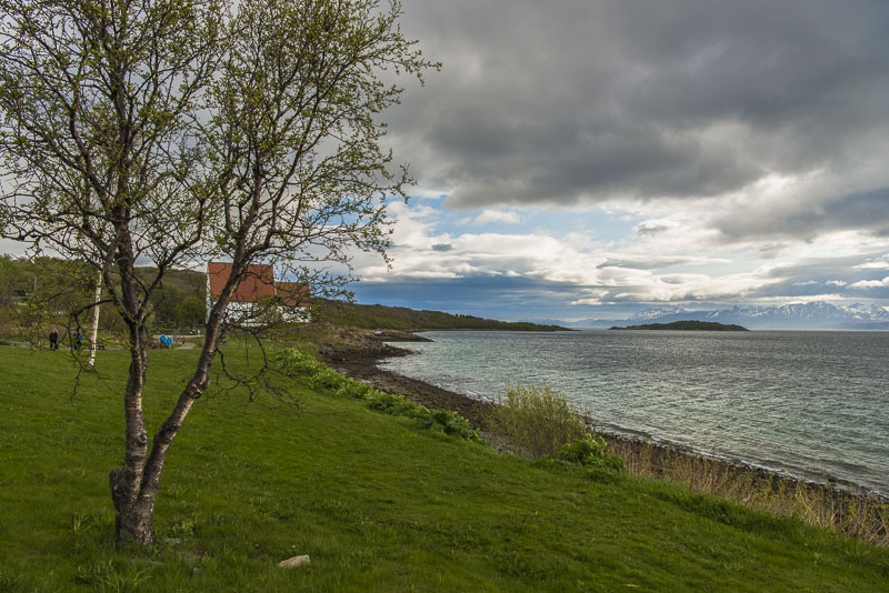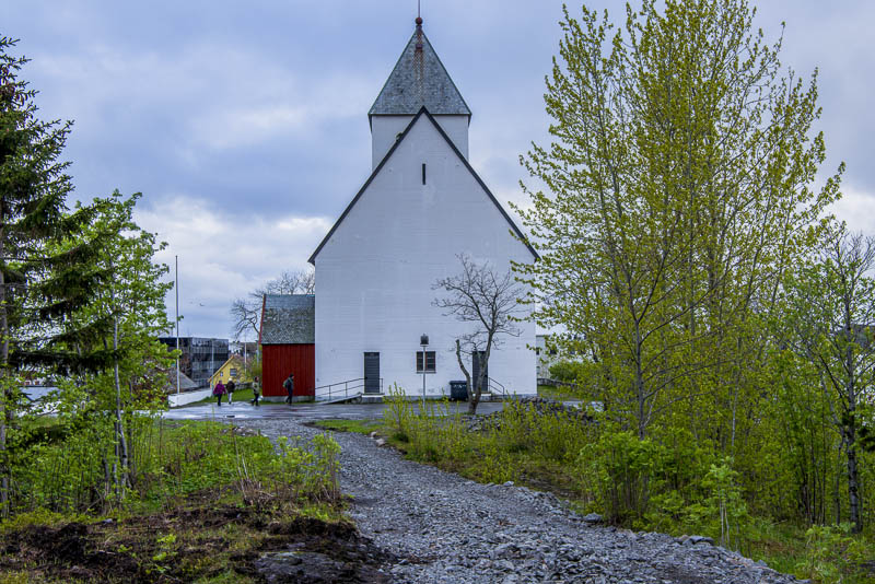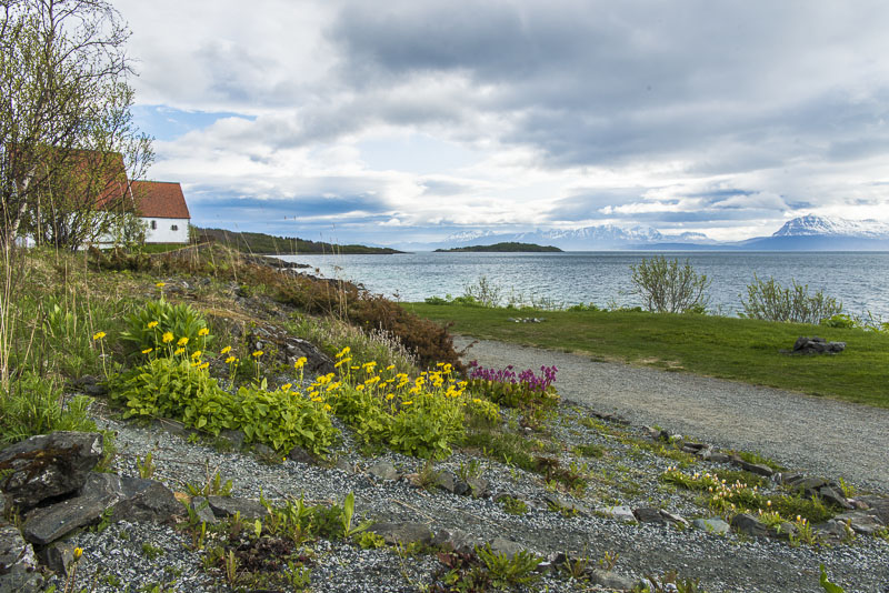 Die Kirche liegt in wunderschöner Landschaft außerhalb von Harstad ...