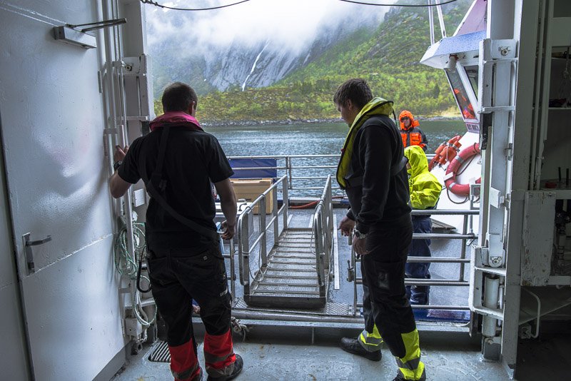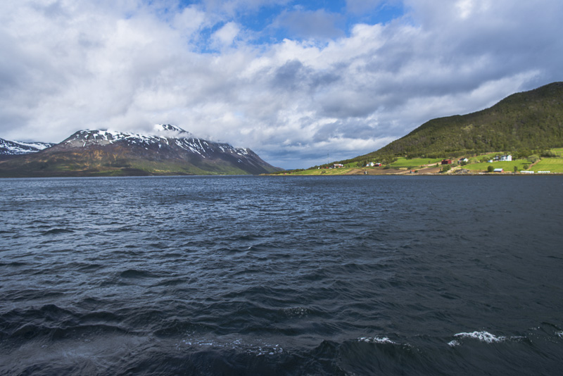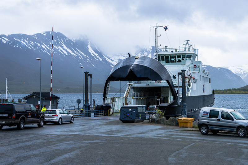 Bei Refsnes fahren wir auf die Fähre, die uns über den Gullesfjord nach Flesnes bringt.