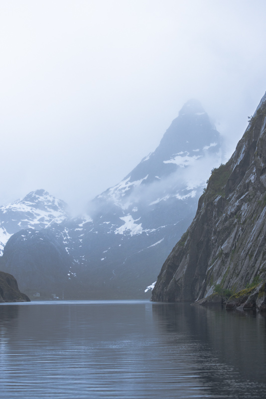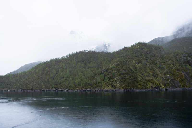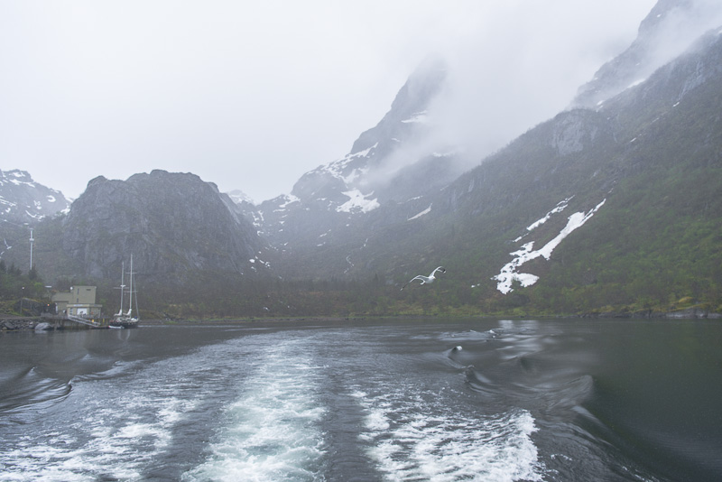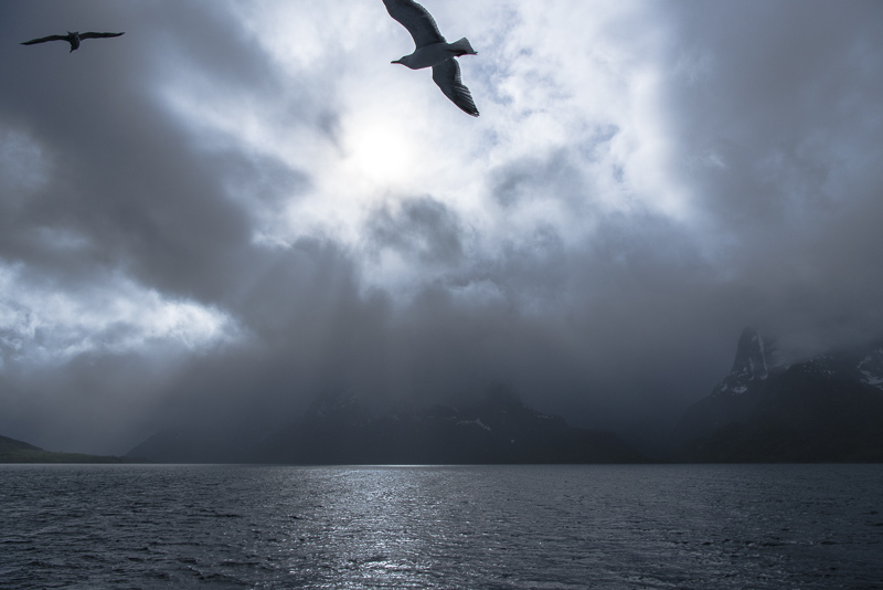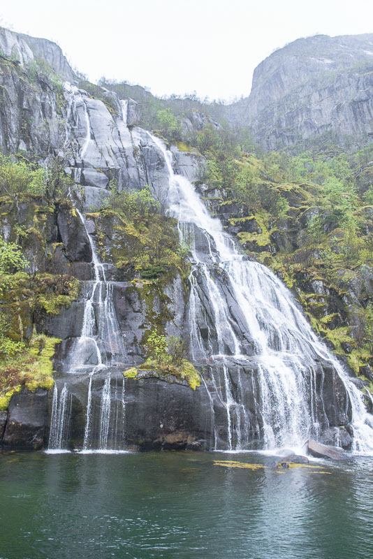 Zwischendurch fahren wir in den Trollfjord ein - ein zweites Mal auf unserer Reise, und diesmal bei stärkerem Regen.