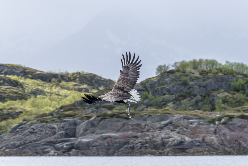 Langsam gewinnt er mit seiner Beute wieder an Höhe.