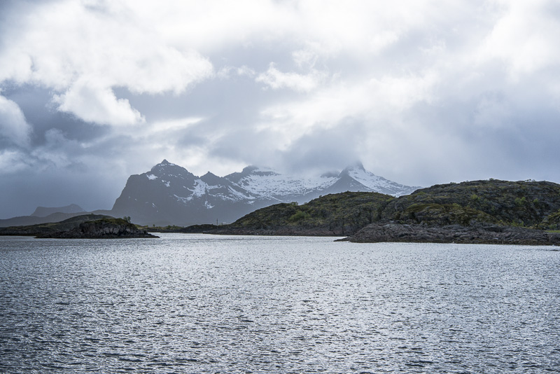 Zoom zu den Bergen jenseits des Vågsfjorden