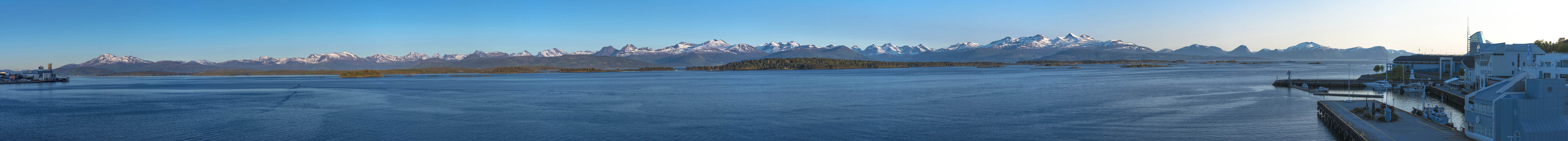 Panoramic picture of the Romsdals fjord, taken from deck 7 of the MS Nordnorge in Molde. 26.5.2016