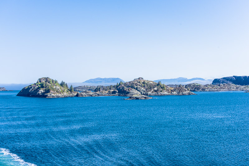 Kahle Inseln, nur stellenweise kleine Wäldchen, die anzeigen, dass wir uns nicht im Norden, sondern eher im Süden Norwegens befinden..