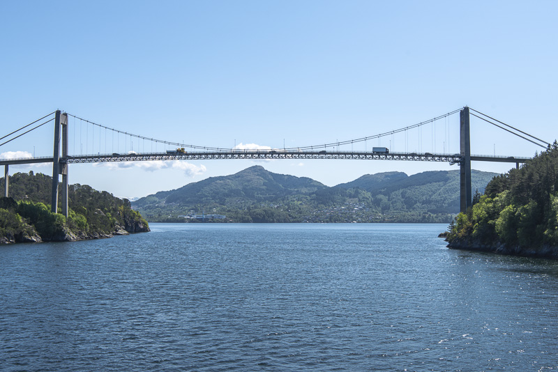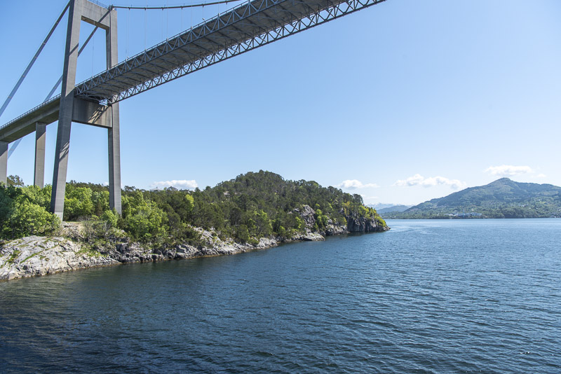 Durch den Kvernafjorden, unter der Brücke über den Haglsund durch ...
