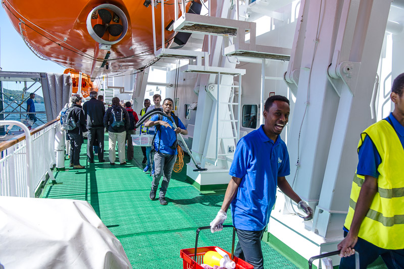 Wir wachen auf, als das Schiff gerade in Florø anlegt. Der letzte Tag. Abschiedsstimmung macht sich breit. Nach dem Frühstück müssen wir bis 9 Uhr die Koffer fertig gepackt und bis 10 Uhr die Kabine geräumt haben. Danach halten wir uns fast nur mehr auf Deck auf.