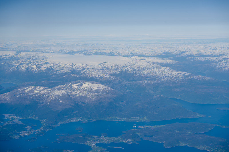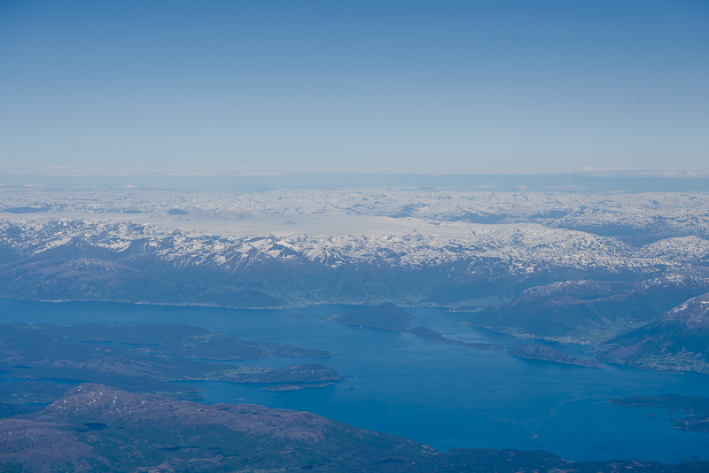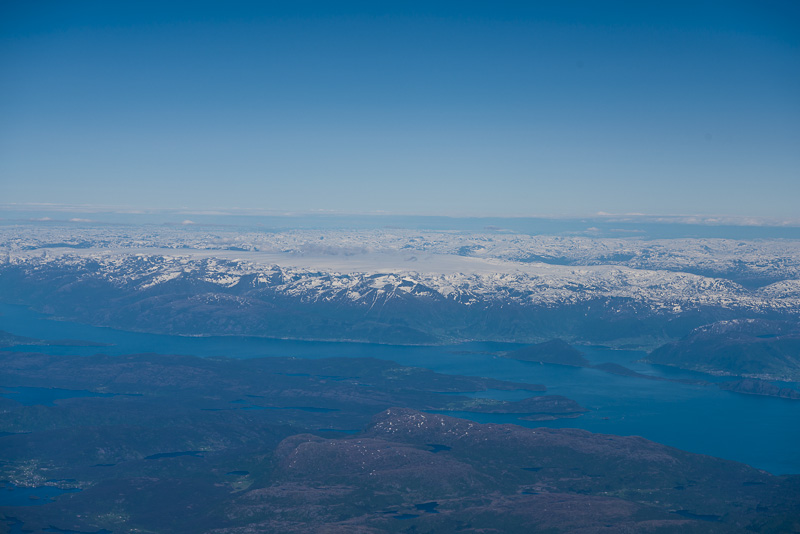 Darunter auch das riesige Gletscherplateau des Folgefonna (1.635 m).