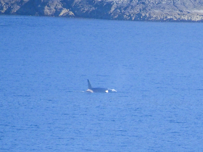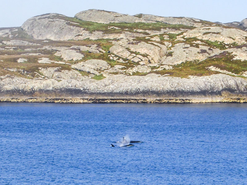 Plötzlich wird durchgesagt, dass Wale gesichtet werden. Alles strömt an Deck, ich sehe sie ganz kurz links vorne und bleibe daher in der Folge auf der linken Seite des Bootes ...