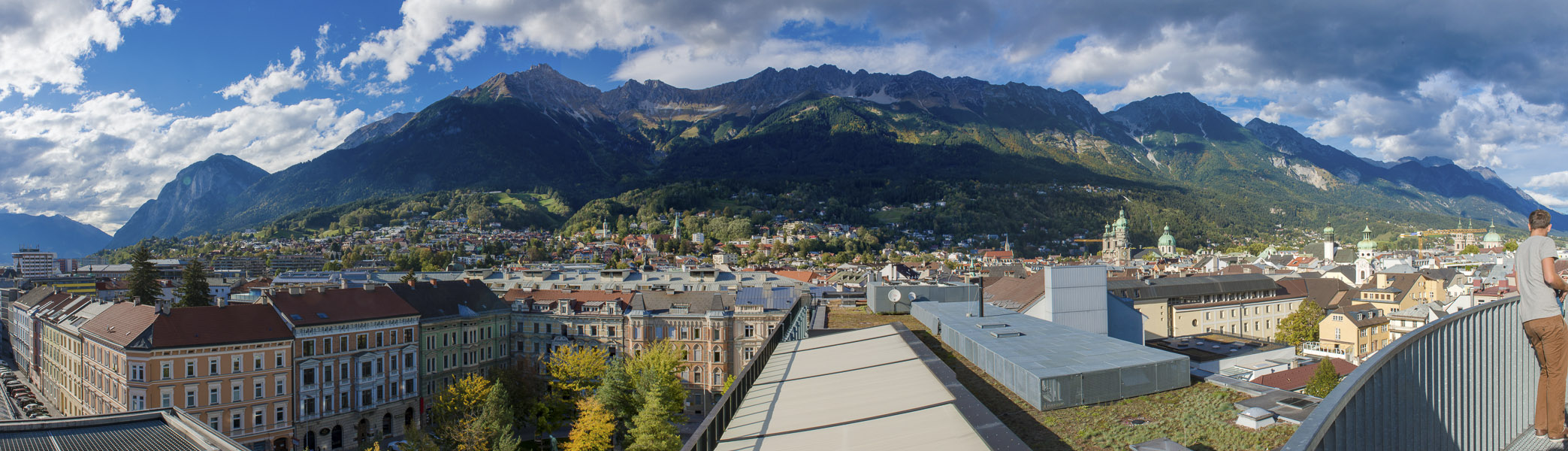 Panoramablick vom Innsbrucker Cafe Lichtblick nach Norden zur Nordkette.