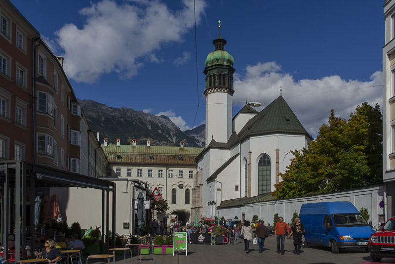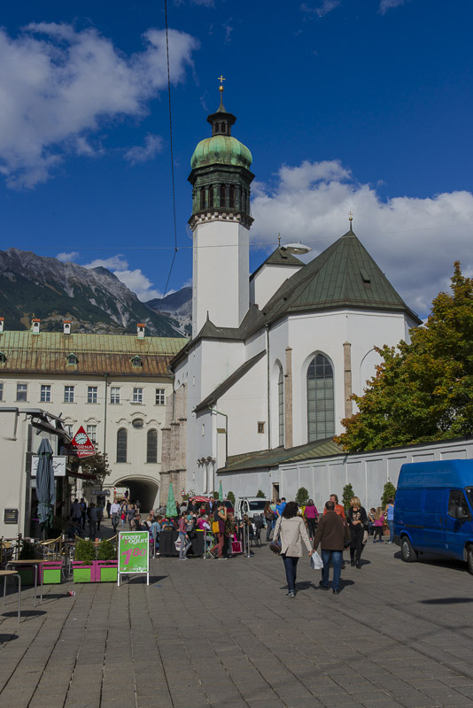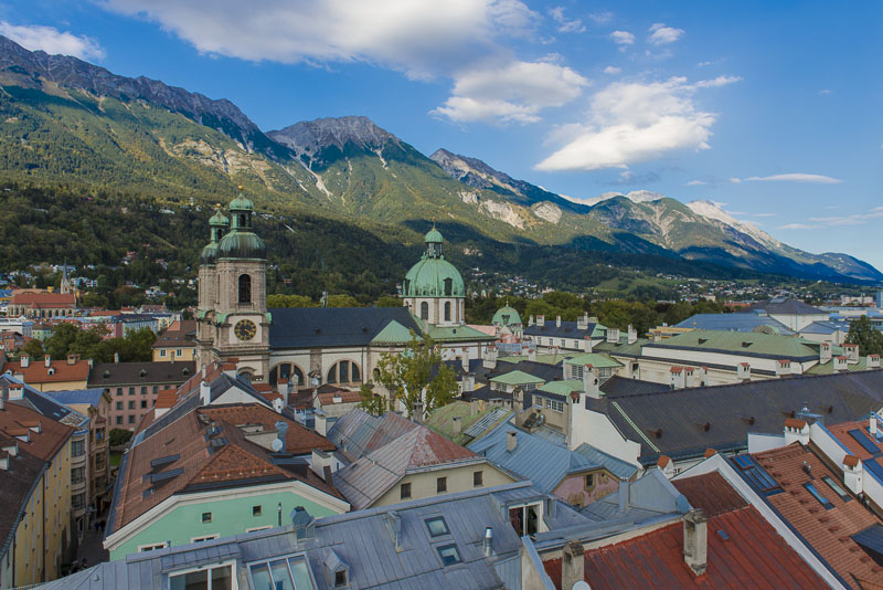 View over the Innsbruck Cathedral to the Northern ridge.