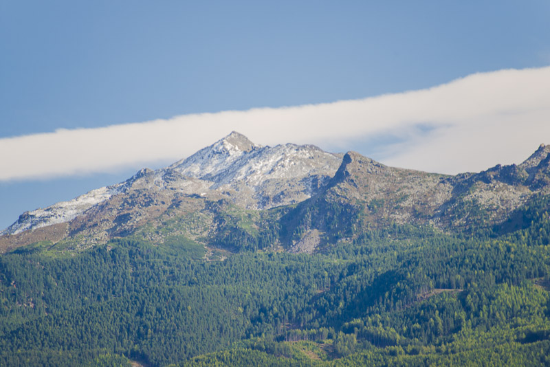 View up the Inn valley. The cone shaped muntain in the centre was climbed by me in 2006.