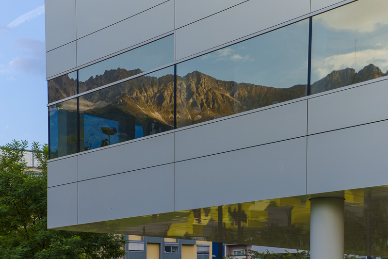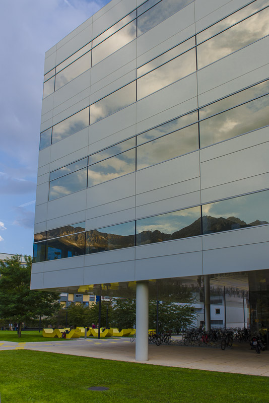 In the glass front of the new polytechnic building ...