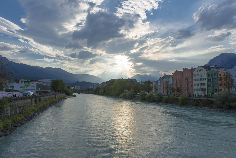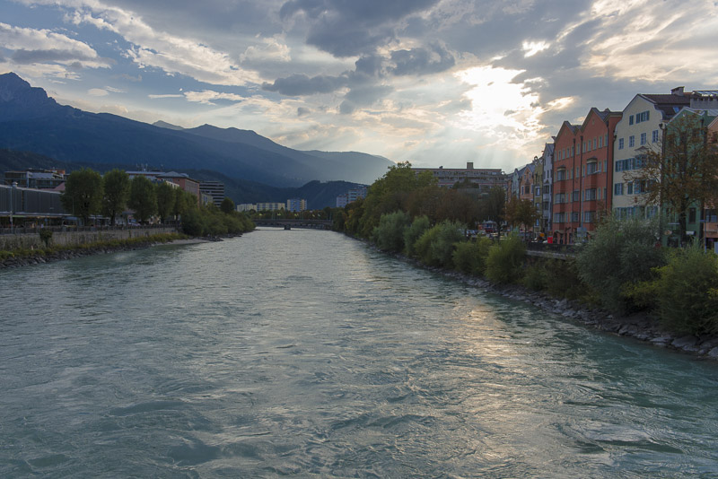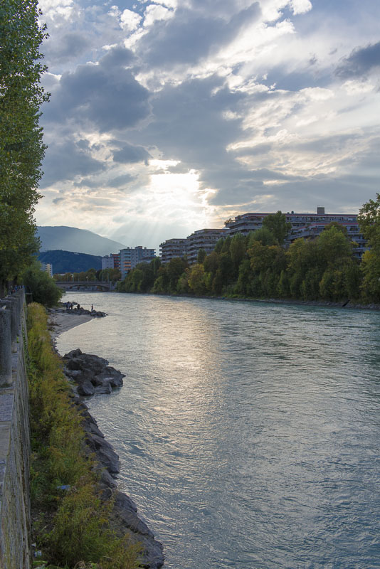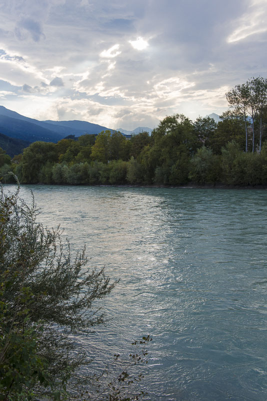 Another view downt the river Inn. Now the distant mountains are illuminated by the sun.