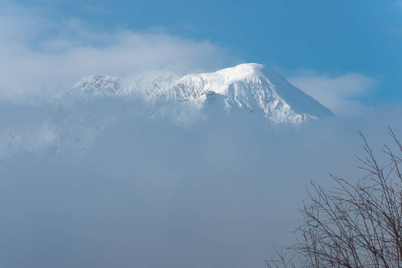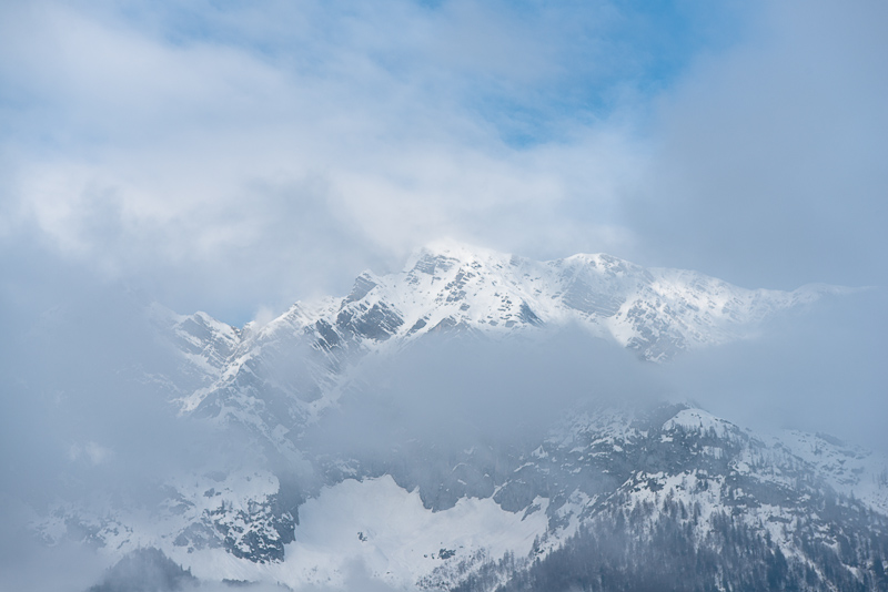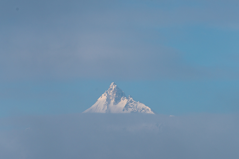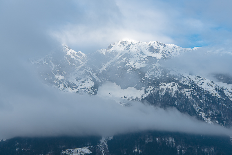 ... und verfolge fasziniert, wie Nebel über den Berg ziehen und unterschiedliche Ansichten ermöglichen.