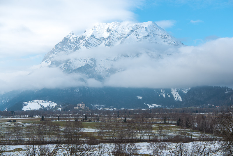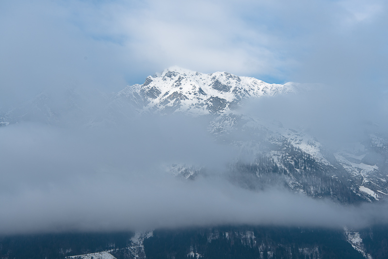 Zwischen den Wolken schaut hier auf einmal die Kammspitze heraus ...