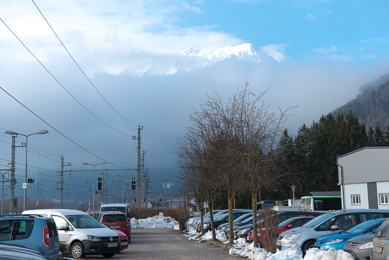 Beim Bahnhof in Stainach - Irdning. Ich hole meine ältesten beiden Kinder (samt Schwiegersohn) vom Zug ab.